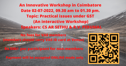 Vari Aalosagargal Sangam (V A Sangam) is registered under the Tamil Nadu Societies Act, 1975 in the year 2020 as a State-level body for Goods & Service Tax (GST) Practitioners and governed by its own constitution. The V A Sangam has its membership spread all over the State of Tamil Nadu comprising of Tax Practitioners practicing in GST, Income tax and allied tax laws. Read More